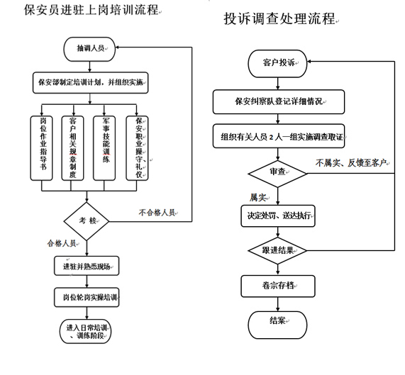 保安服務過程監督檢查和質量控制流程、糾正及預防機制,應急處突應急預案和處理機制。